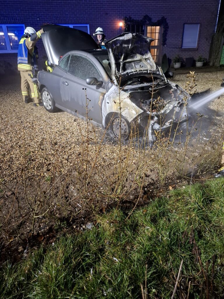 In der Nacht zu Dienstag um kurz nach 2 Uhr wurde ein Teil der Löscheinheit Rheurdt zu einem PKW-Brand in den Ortsteil Kengen gerufen.